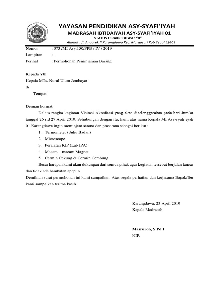 6 Contoh Surat Peminjaman Barang Yang Dapat Dijadikan Referensi